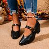 Мода Плюс Размер 2025 Ретро Мэри Джейн Женские Туфли на Высоком Каблуке Мелкие Горячая Распродажа Массивные Каблуки Ремешок с Пряжкой Туфли-Лодочки Универсальные Платье и Карьера