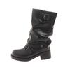 Модные рыцарские сапоги для женщин 2025 Осень Коричневые сапоги до середины икры из ПУ кожи Плиссированные с пряжкой Женские слипоны на толстом каблуке Сапоги для верховой езды Mujer