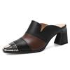 Мода 2025 Новые женские мюли из натуральной кожи с металлической отделкой, модные туфли на среднем устойчивом каблуке, летние клипсы, тапочки, женская повседневная офисная обувь