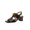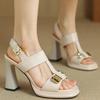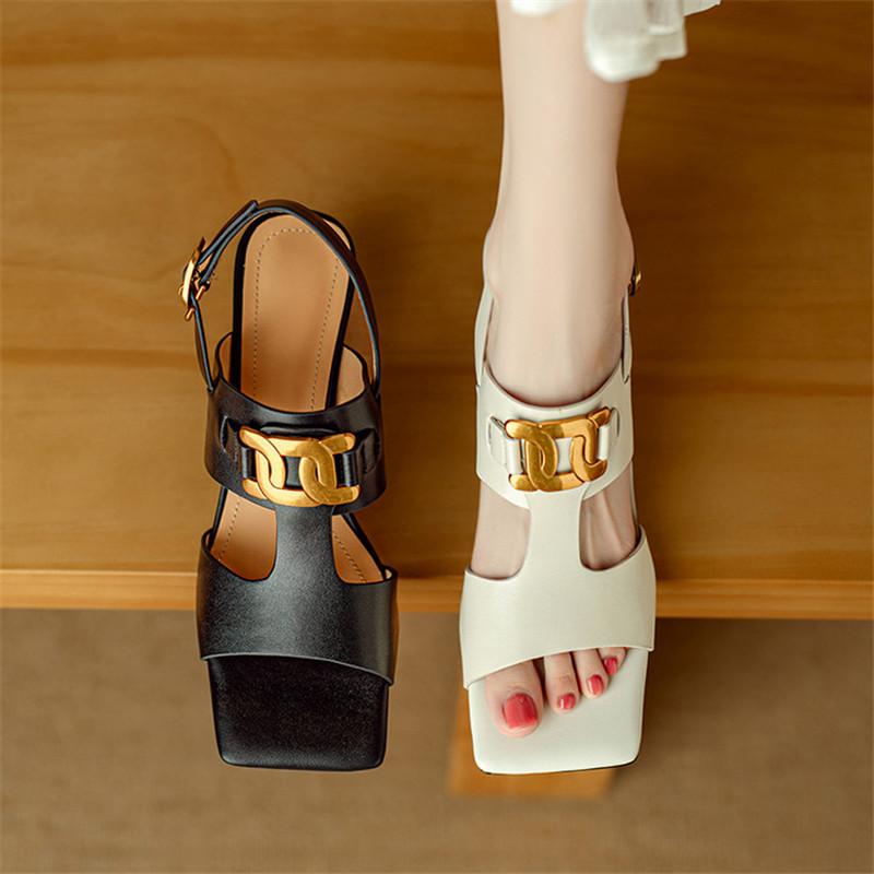 Модные новые летние сандалии Сандалии из спилковой кожи для женщин Модные металлические украшения Сандалии с квадратным носком Женские туфли на высоком каблуке Повседневная обувь