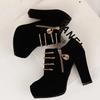 Модные женские ботильоны на осень-зиму, водонепроницаемые, на платформе, на толстом каблуке, короткие ботинки из бархатной ткани, с круглым носком, на молнии сбоку, на высоком каблуке