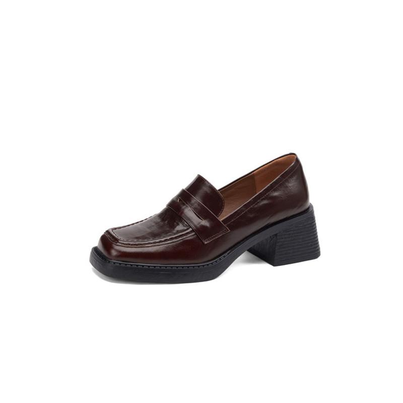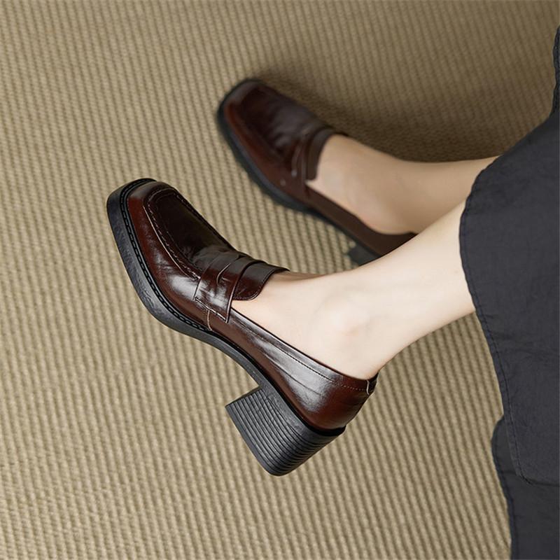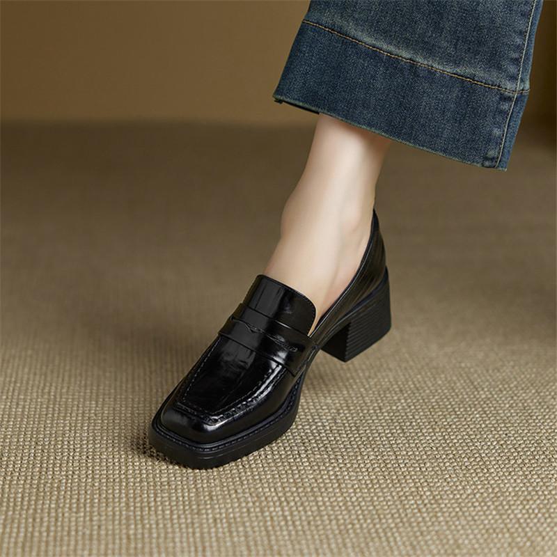 Модные новые весенне-осенние женские туфли из натуральной кожи, туфли-лоферы с квадратным носком для женщин, модные ретро женские туфли-лодочки на массивном высоком каблуке