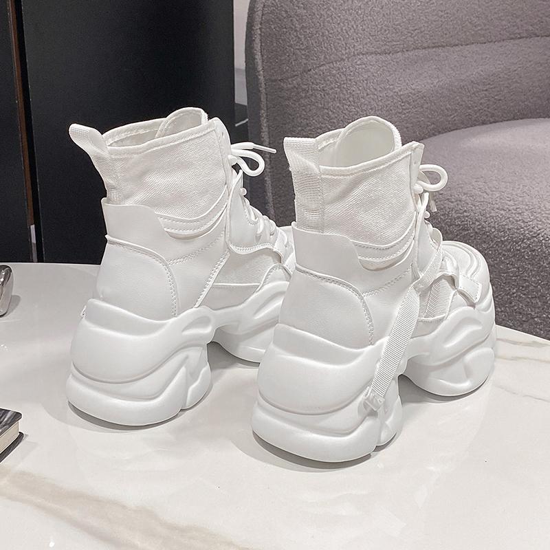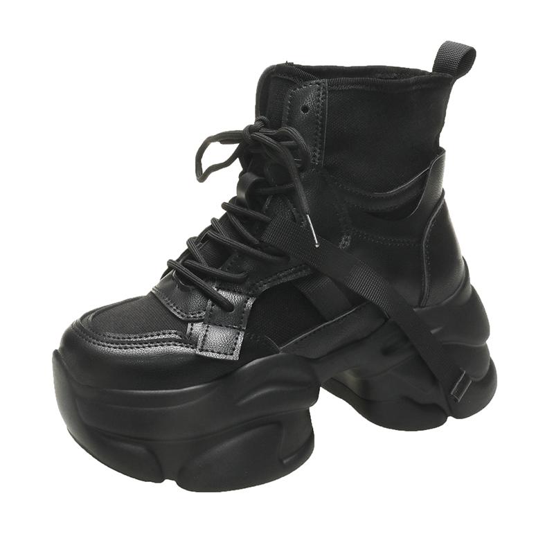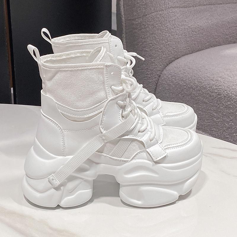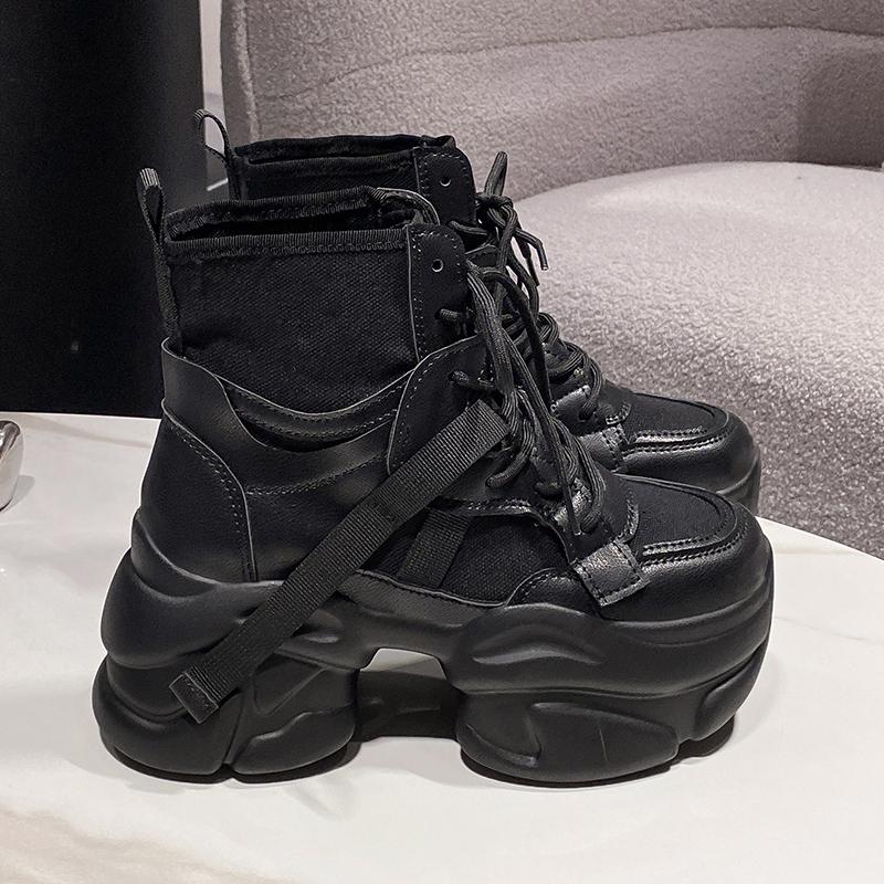 Модная женская осенняя парусиновая кожаная обувь до щиколотки 7,5 см толстый каблук мотоциклетные женские кроссовки толстая подошва платформа боевые короткие ботильоны