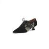 Модные Новые Весенние Женские Туфли из Овчины Французские Ретро Туфли-лодочки с Острым Носком Женские Туфли-лоферы из Вышитой Сетки для Женщин Женские Туфли