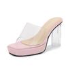 Модные прозрачные ПВХ шлепанцы 2025 года Большого размера Хрустальный каблук Повседневная обувь на высоком каблуке Сексуальные женские прозрачные шлепанцы с открытым носком
