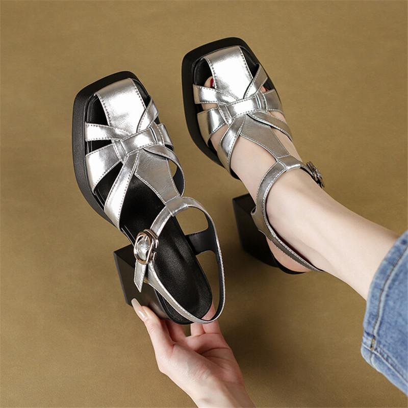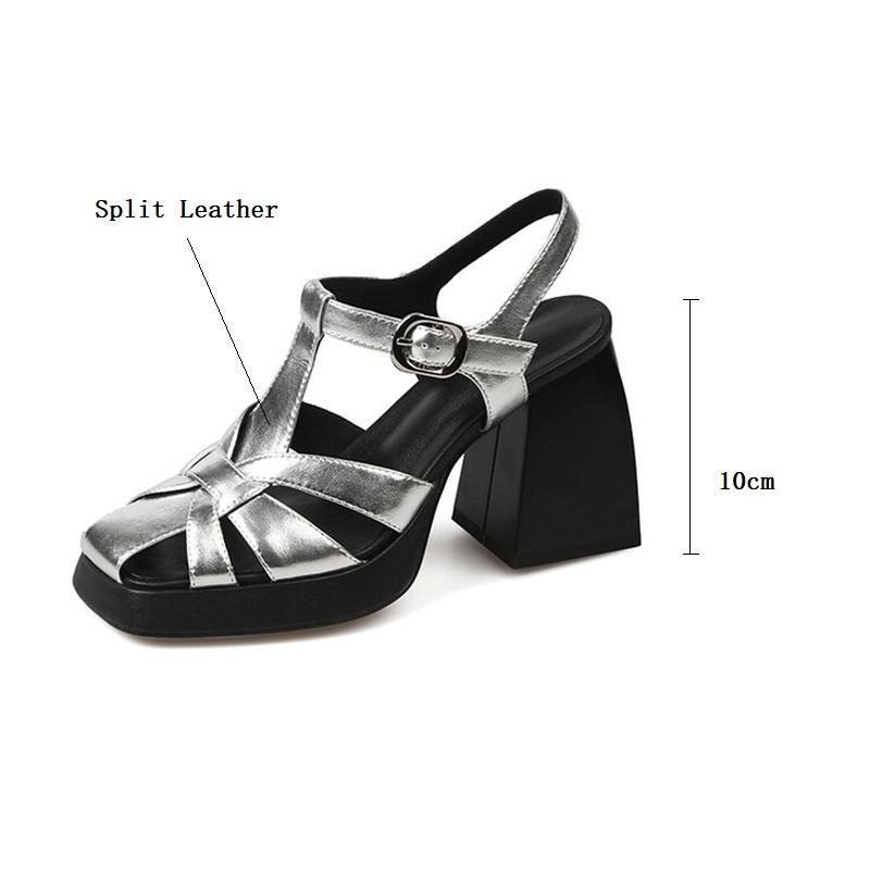 Модные летние сандалии из спилковой кожи, женская обувь, сандалии на высоком каблуке с квадратным носком для женщин, модная римская обувь ручной работы, сандалии на платформе