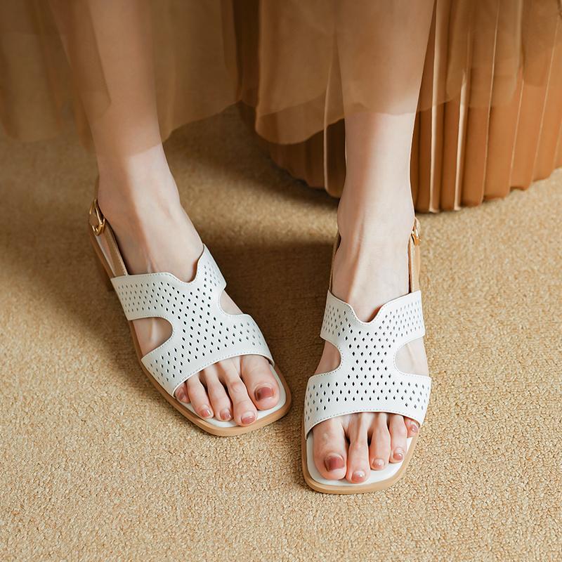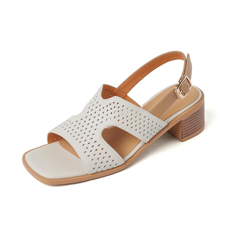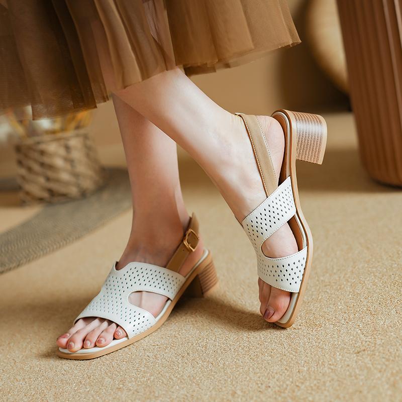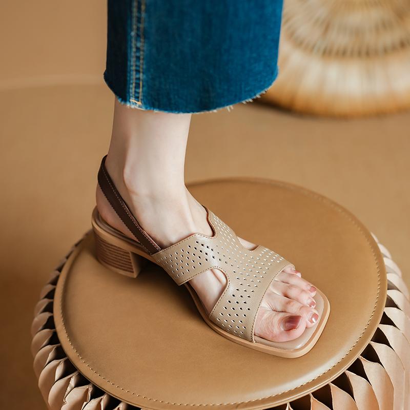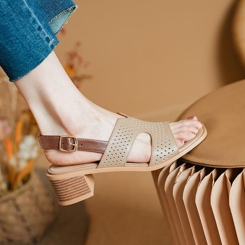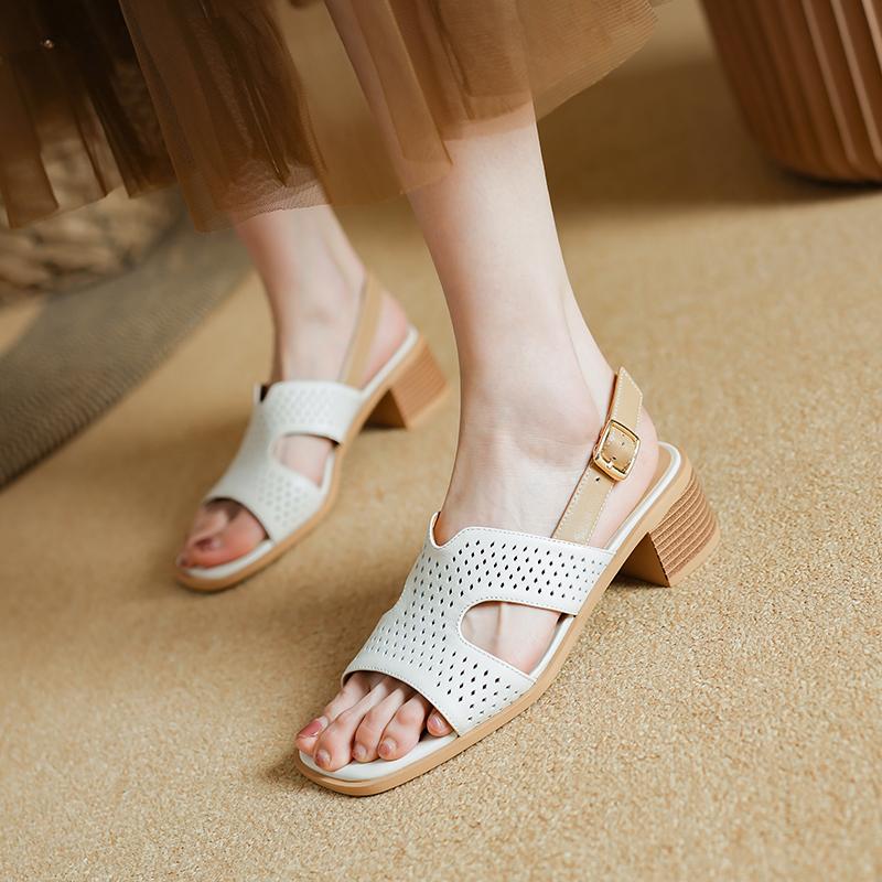 Модные новые летние женские сандалии, обувь из натуральной кожи для женщин, босоножки с открытым носком и ремешком на пятке, с открытым носком, на массивном каблуке, бежевые гладиаторские сандалии