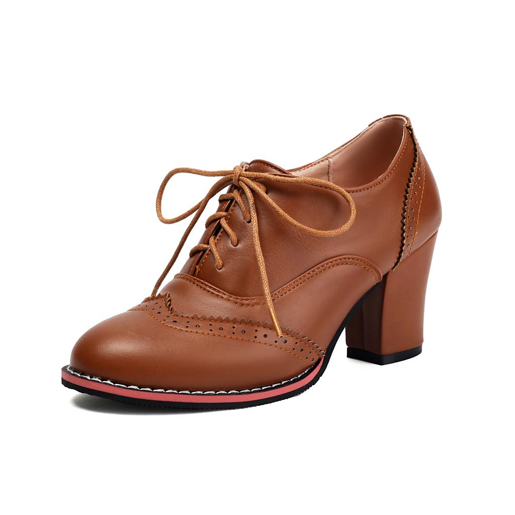 Мода 2025 Женские туфли-лодочки Круглый носок Толстый высокий каблук Платформа Броги Студент Резные Ретро Шнуровка Классические Весенние Офисные Леди Туфли на шнуровке