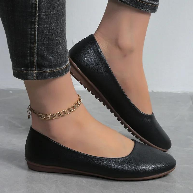 Fashion 2025 Plus Size Outdoor Women's Flats Concise Round Toe Soft Bottom Slip on Flats Solid High Quality Casual Daily Walking Shoes