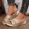 Мода 2025 Лето Новые Шлепанцы Женские с Открытым Носком Модные Уличные Принтованные Повседневные Большого Размера Бестселлер Металлическая Отделка Шлепанцы на Танкетке