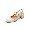 Модные летние сандалии Мэри Джейн с квадратным носком, на высоком каблуке, с закрытым носком и ремешком на пятке, римские сандалии для женщин, женские сандалии из спилковой кожи