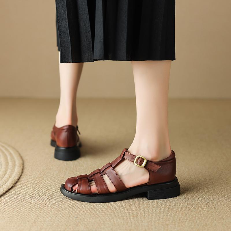 Мода 2025 Новые женские сандалии в римском стиле Летние туфли-гладиаторы на толстом каблуке Женская повседневная ретро-обувь из натуральной кожи для работы