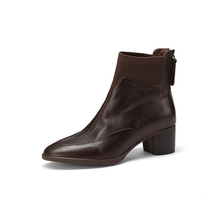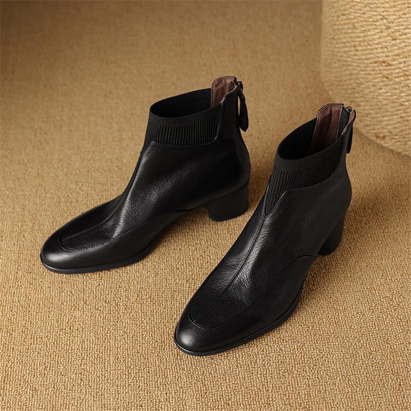 Модные новые осенние женские ботинки из натуральной кожи, модные ботинки с круглым носком для женщин, короткие ботинки, ботильоны, массивные каблуки, черные, коричневые