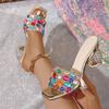 Модные Eilyken Сексуальные Камуфляжные Кристальные Круглые Каблуки Женские Шлепанцы Летние ПВХ Прозрачные Квадратный Носок Банкет Вечеринка Шлепанцы