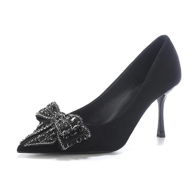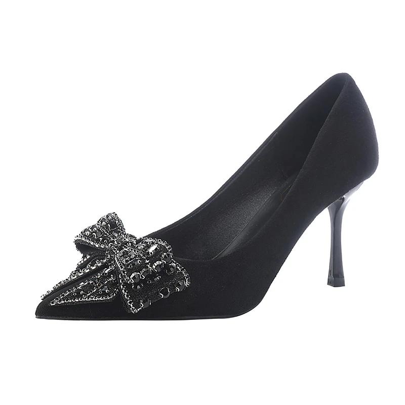 Мода 2025 Новые туфли-лодочки на высоком каблуке Модные с бантом Офисные и деловые Сексуальные с острым носком Самые продаваемые туфли для женщин