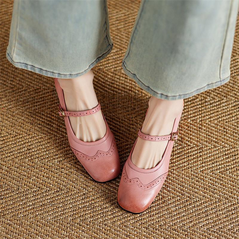 Мода Новые Весна/Лето Натуральная Кожа Женские Туфли-Лодочки для Женщин Модные Броги Квадратный Носок Мэри Джейн Женские Туфли на Высоком Каблуке