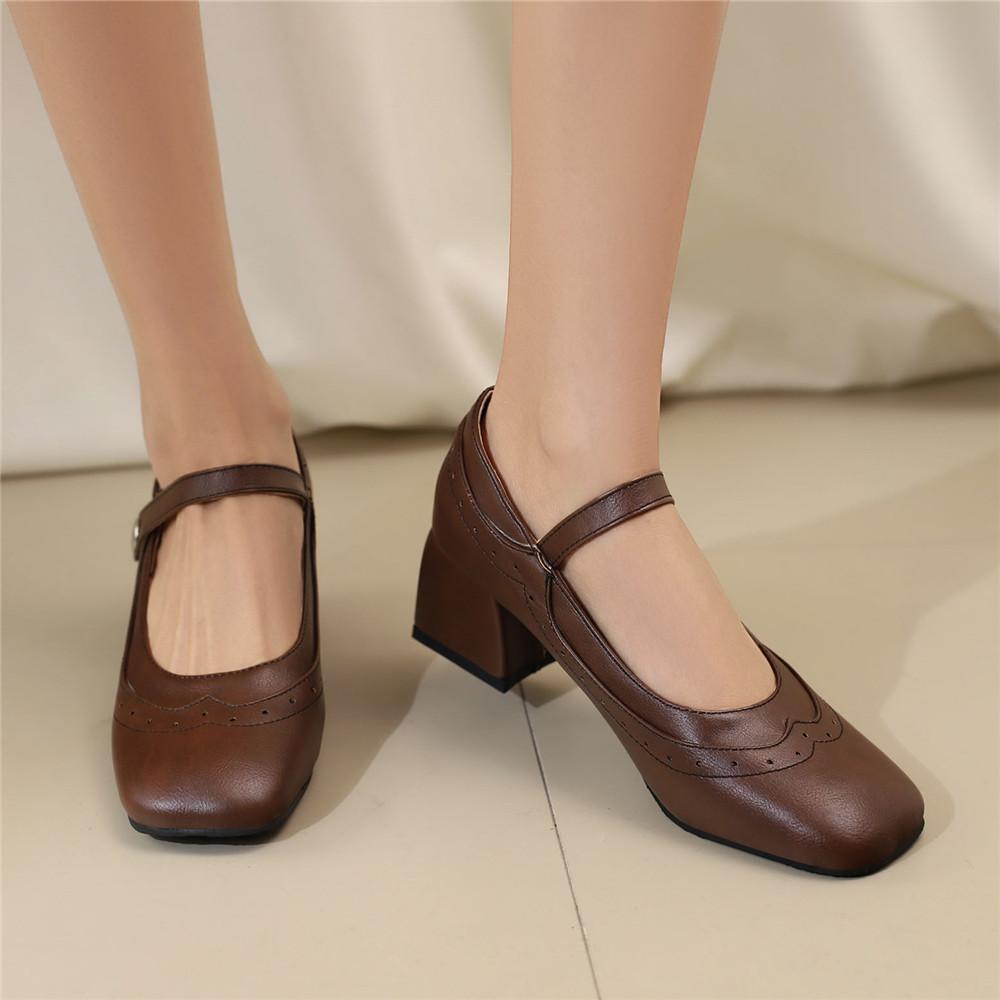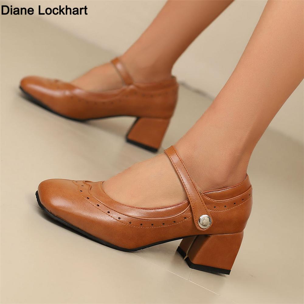 Модная обувь на высоком каблуке Женские туфли-лодочки Ремешок на щиколотке Пряжка Толстый каблук Женские туфли на высоком каблуке Платформа Мэри Джейн Женские туфли-лодочки Обувь 34-48