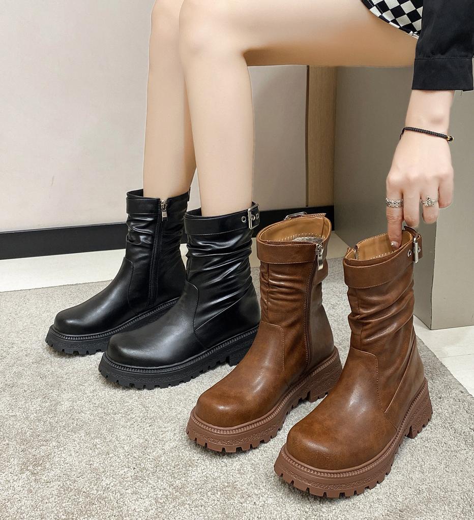 Модные женские ботинки челси на платформе из искусственной кожи, новые осенне-зимние модные ботильоны в ретро-стиле с плиссировкой, ботинки Мартон для женщин, zapatos mujer