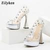 Модные Eilyken Прозрачные ПВХ Прозрачные Женские Туфли Стриптизерши Перспекс Шпильки Высокие Каблуки Острый Носок Вечеринка Ночной Клуб Серебряные Туфли