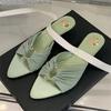 Мода Eilyken Модный дизайн Плиссированные Ажурные Тонкие Низкие Каблуки Женские Шлепанцы Летние С Острым Носком Вечернее Платье Женская Обувь