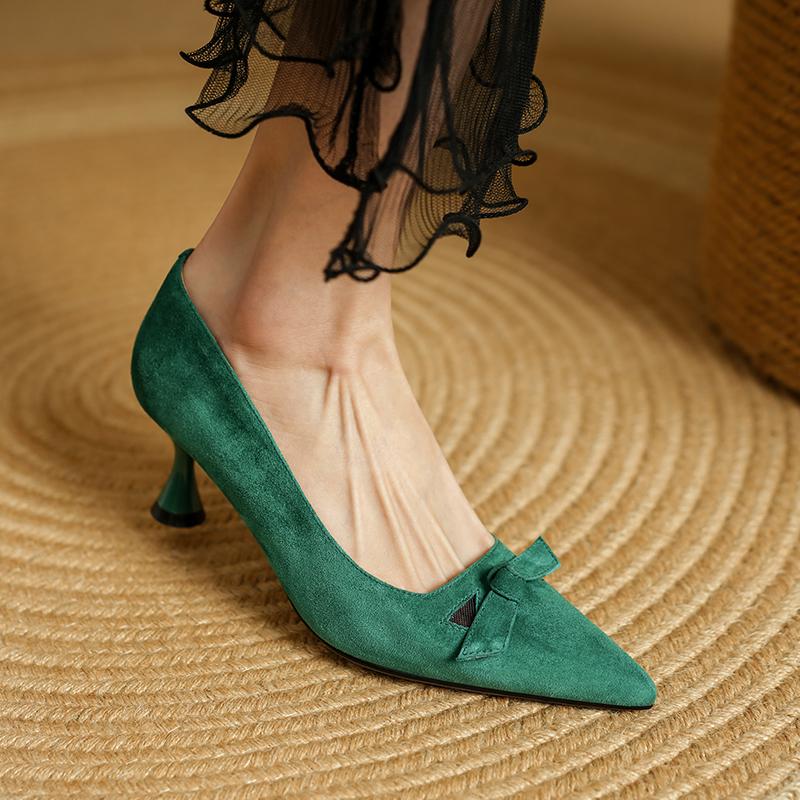 Мода 2025 Новая мода Женские туфли-лодочки Массивный высокий каблук Весна Элегантное лето Острый носок Повседневная обувь Женские Черные Зеленые Размер 34-40