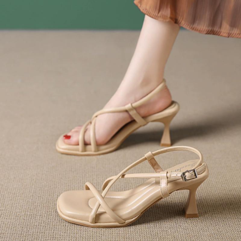 Fashion 2025 Summer New Simple Square Headed Thick Heel Slim Strap Sandals for Women Straight Toe Open Toe Sandals for Women