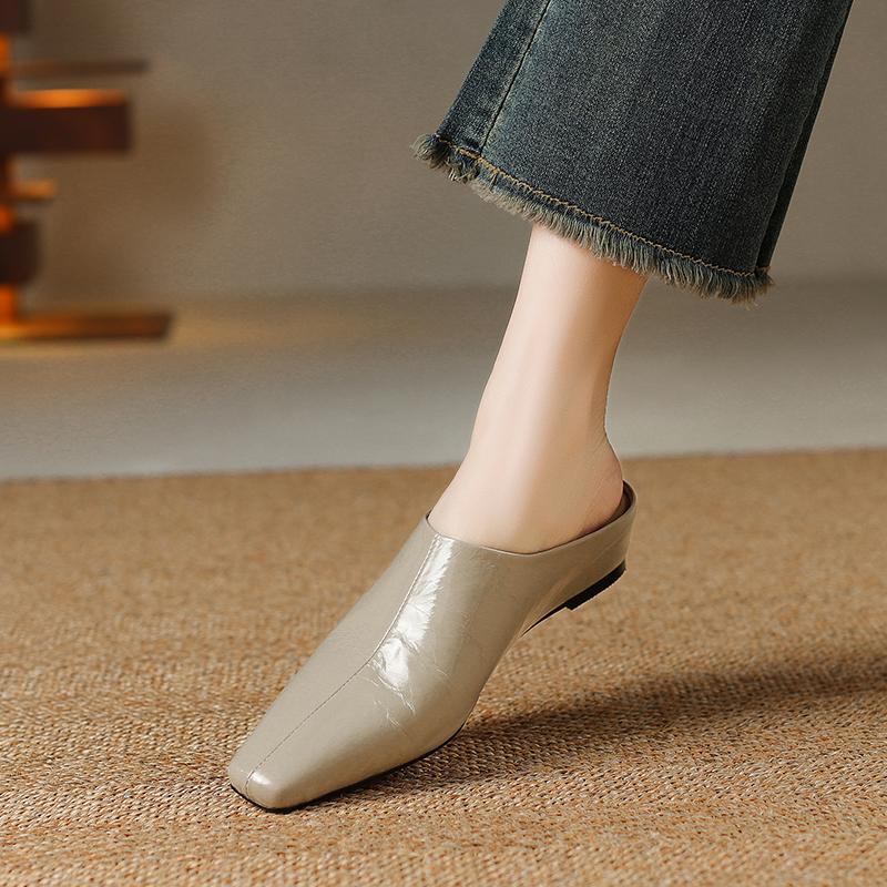 Мода 2025 Лето Женская обувь Натуральная кожа Квадратный носок Женские сандалии Однотонные Современные сандалии для женщин Массивный каблук Женские мюли