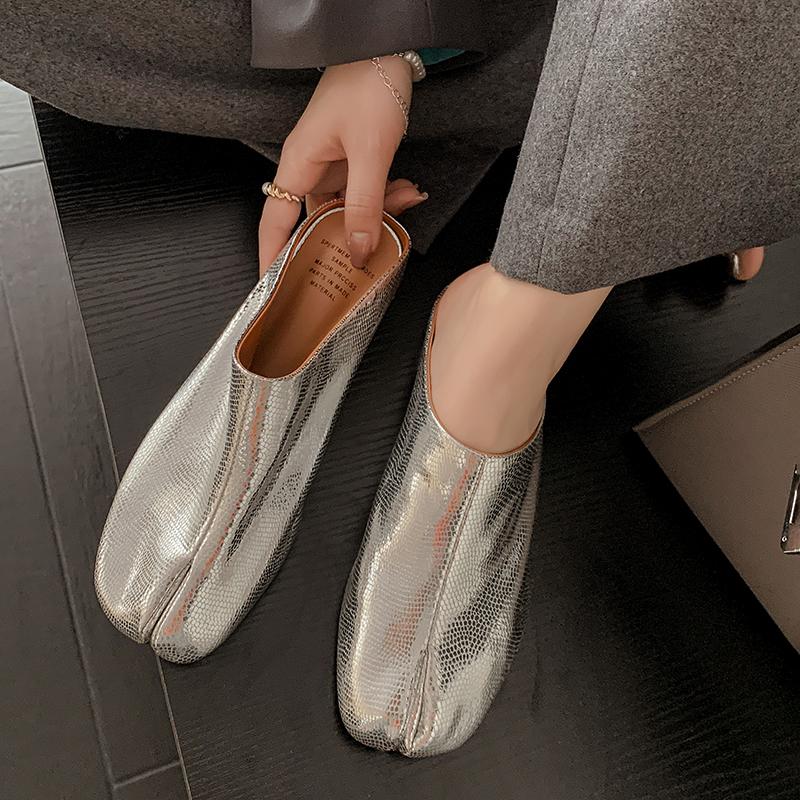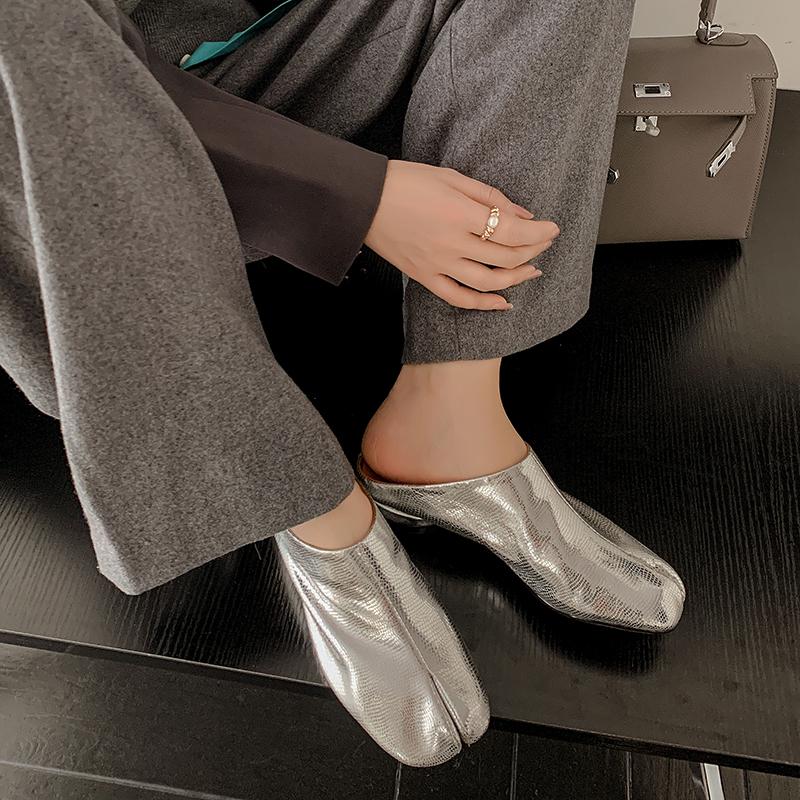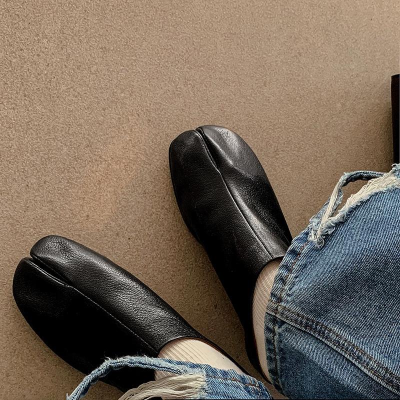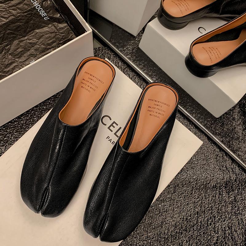 Модные туфли-лодочки на низком каблуке для женщин, квадратный носок, разделяющие пальцы, шлепанцы из натуральной кожи, весенне-летние, лаконичные, повседневные, для работы, женские, новые