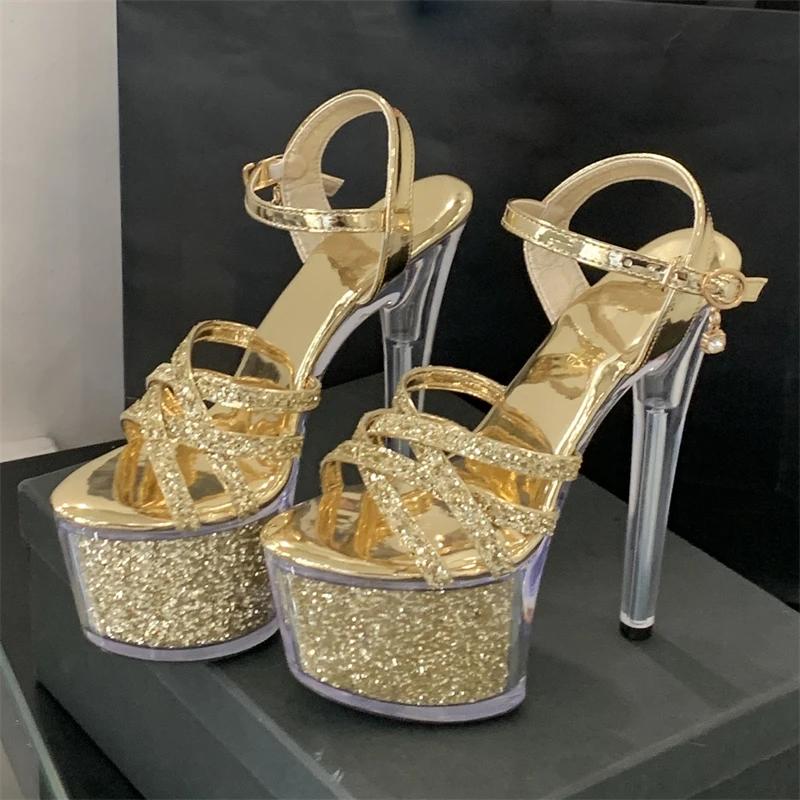 Модные Eilyken Модный Дизайн Ткань с Блестками Пряжка Ремешок Женские Сандалии Экстремальная Платформа Высокие Каблуки Сексуальные Открытый Носок Туфли для Стриптиза