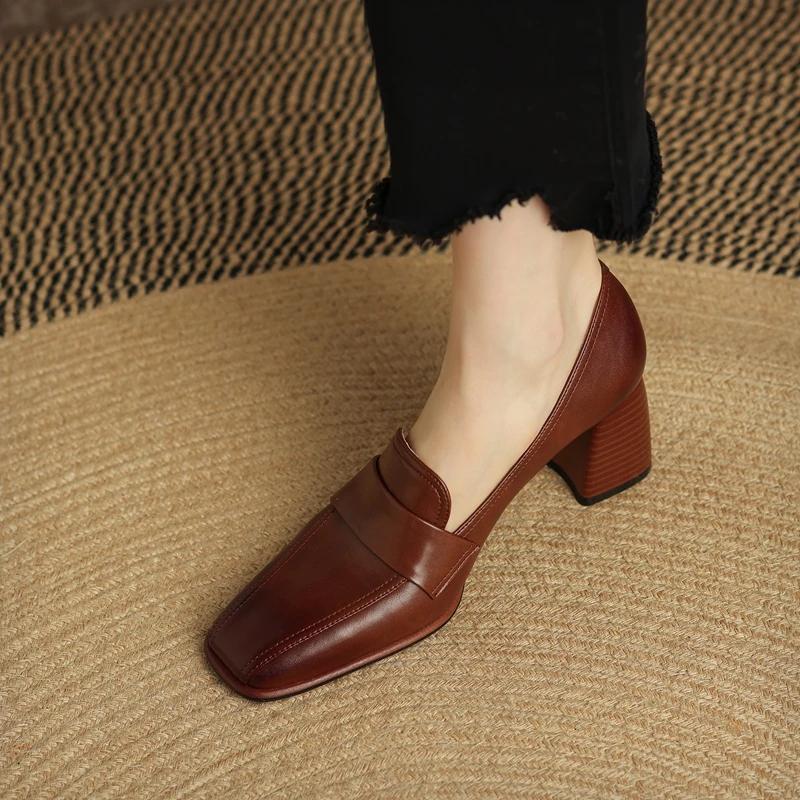Мода 2025 Весна Новые ТУФЛИ ЖЕНСКИЕ ИЗ НАТУРАЛЬНОЙ КОЖИ ПОВСЕДНЕВНЫЕ Женские Слипоны Лодочки с Мелким Вырезом Квадратный Носок Каблуки Женская Обувь Zapatos De Mujer — купить товар онлайн с бесплатной доставкой по всему миру!
