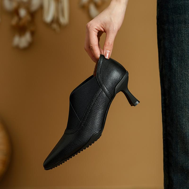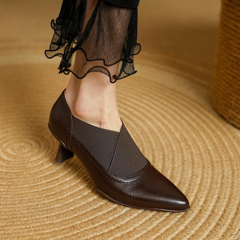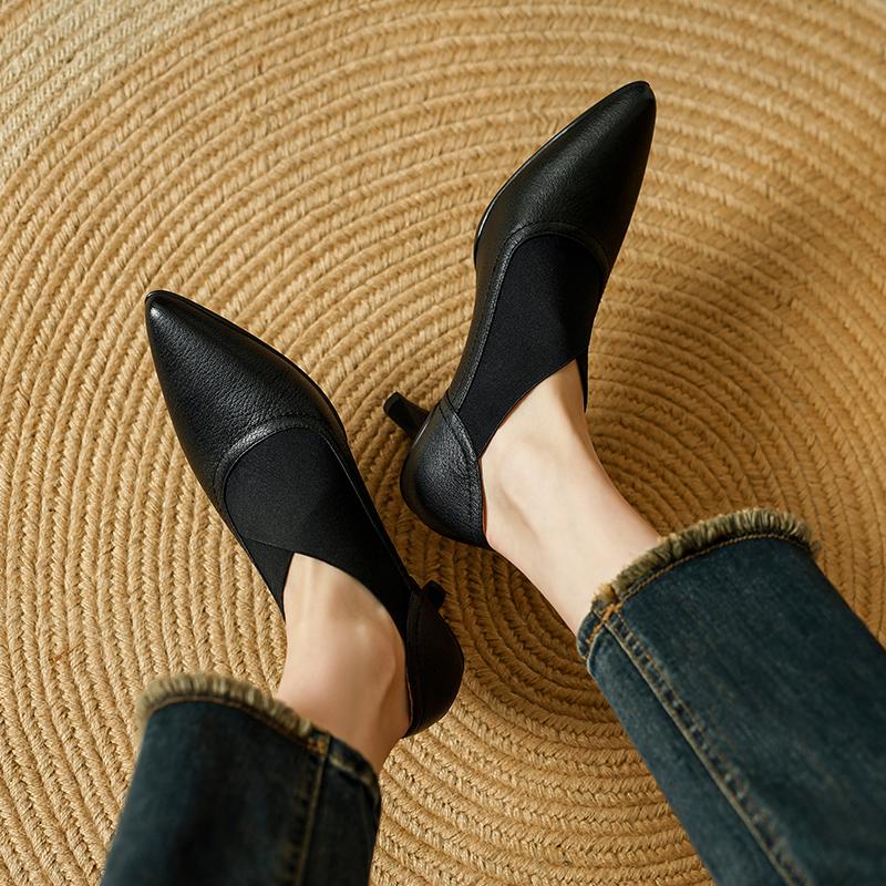 Мода 2025 Весна Лето Женские Туфли Лодочки Высокий Каблук Натуральная Кожа Острый Носок Зрелая Рабочая Обувь Женщина Базовая Офисная Леди Женская Обувь