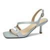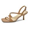 Fashion New Summer Sandals Genuine Leather Sandals Casual French Square Toe High Heels Sandals for Women Cowhide Sandal Zapatos De Mujer