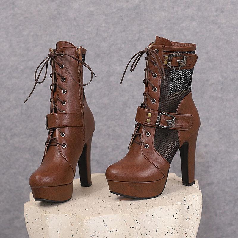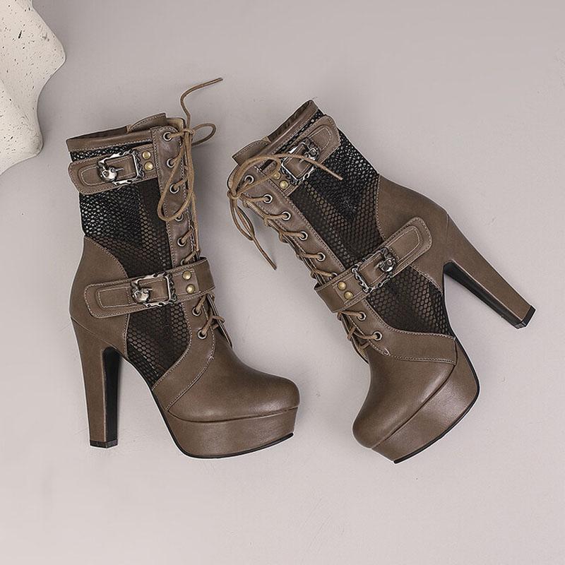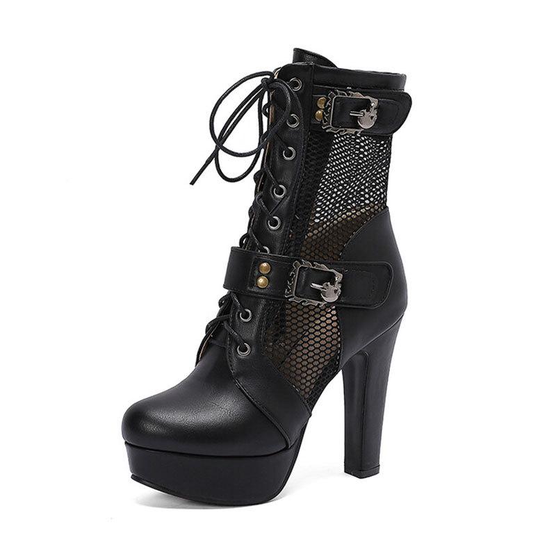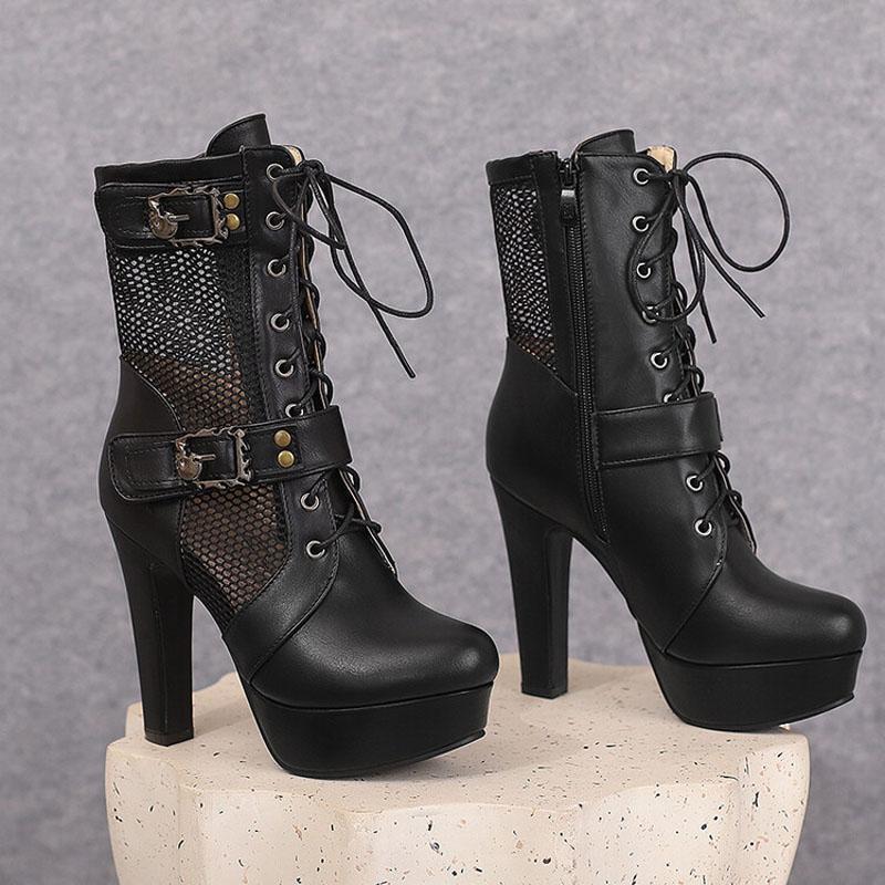 Мода 2025 Новые летние сетчатые ботинки на шнуровке Женские сексуальные босоножки на платформе и высоком каблуке Большого размера Женские ботинки на заказ Женская обувь