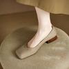 Модная обувь для женщин Элегантные туфли-лодочки с квадратным носком Мягкая кожа Толстый низкий каблук Осенняя женская обувь Повседневные однотонные туфли на каблуке с неглубоким вырезом Женщины