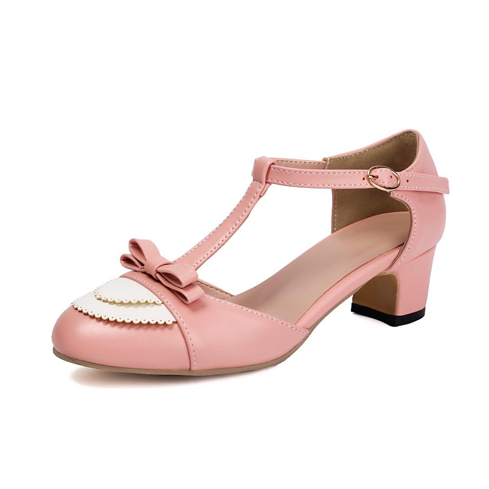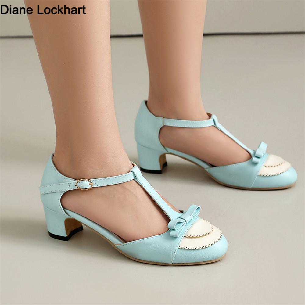 Модные женские туфли на высоком каблуке Мэри Джейн Лодочки Туфли с бантом Толстый высокий каблук Повседневные женские лодочки Розовые Chaussures Femme Туфли Лолиты 35-43