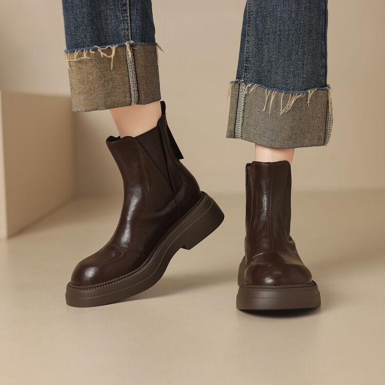 Модные новые осенне-зимние женские ботинки на платформе для женщин, с круглым носком, короткие ботинки, модные ботинки на толстом каблуке, рыцарские ботинки, ручная работа