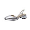 Мода 2025 Весна/лето Мода Французские Босоножки на среднем каблуке с серебристым бантом из мягкой кожи Женские Массивные Ретро Сандалии с квадратным носком и каблуком