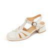 Мода 2025 Новые Простые Сандалии из Натуральной Кожи с Пряжкой Женские Круглый Каблук 4 см Летняя Женская Ретро Обувь для Платья Женские Сандалии