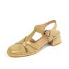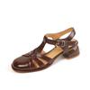 Мода 2025 Новые Простые Сандалии из Натуральной Кожи с Пряжкой Женские Круглый Каблук 4 см Летняя Женская Ретро Обувь для Платья Женские Сандалии — купить товар онлайн с бесплатной доставкой по всему миру!
