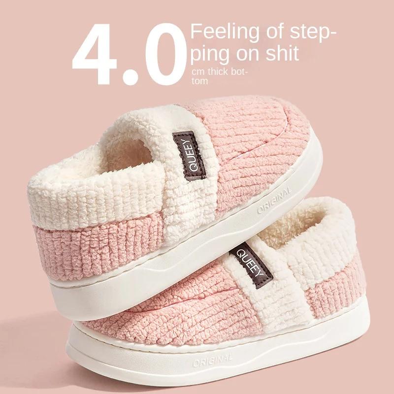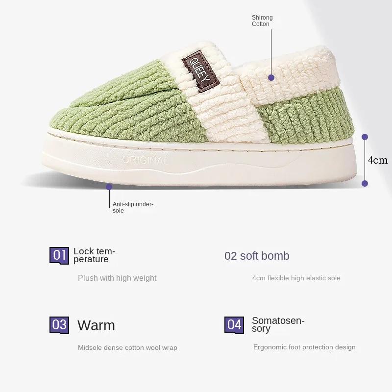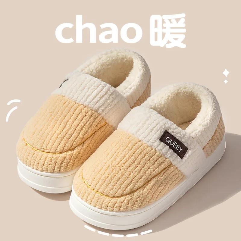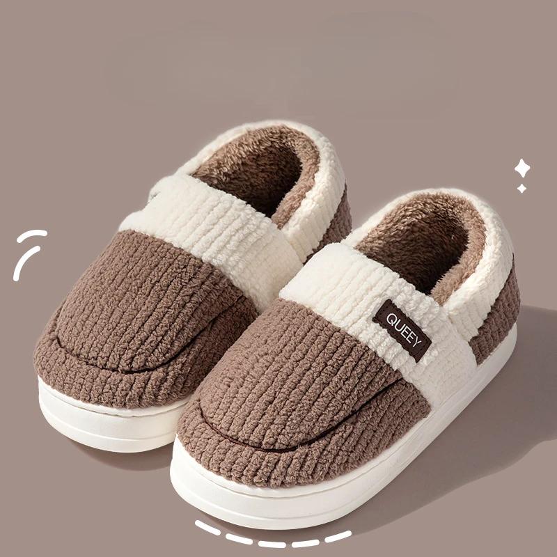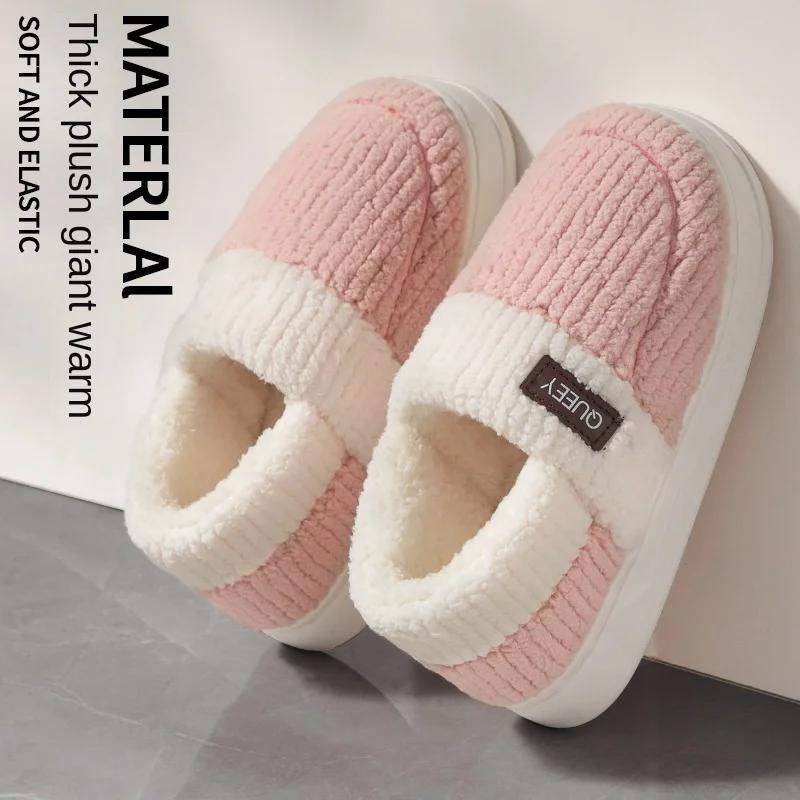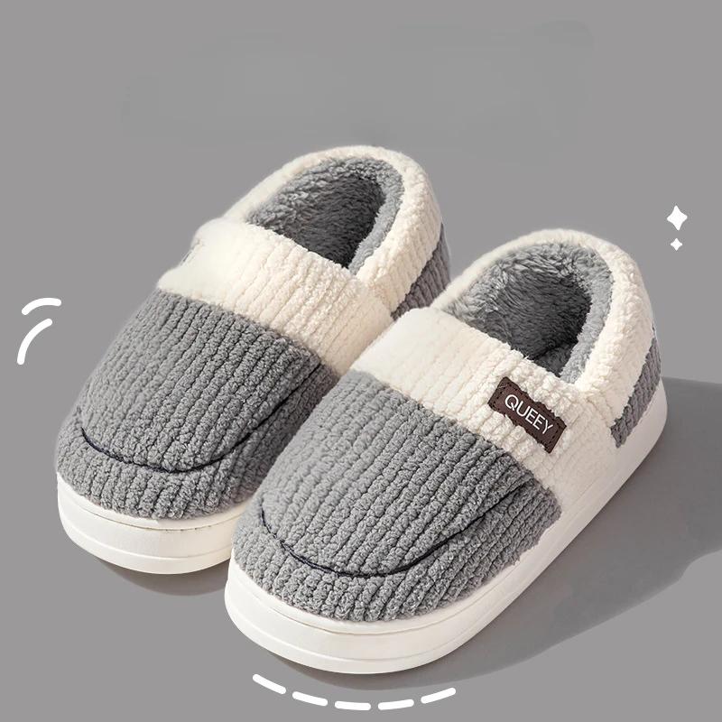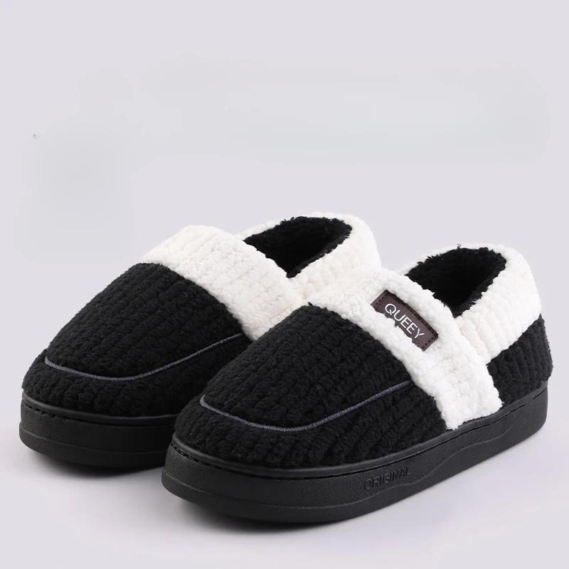 Мода 2024 года, зимние домашние мужские плюшевые тапочки для дома и отдыха на открытом воздухе, мягкая толстая подошва, нескользящая подошва, теплые парные хлопковые тапочки из ПВХ