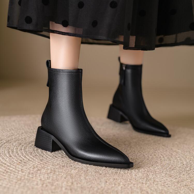 Модные новые осенне-зимние женские ботинки из коровьей кожи, модные ботинки-рыцари с острым носком для женщин, короткие ботинки для женщин на массивном каблуке, Botas Mujer