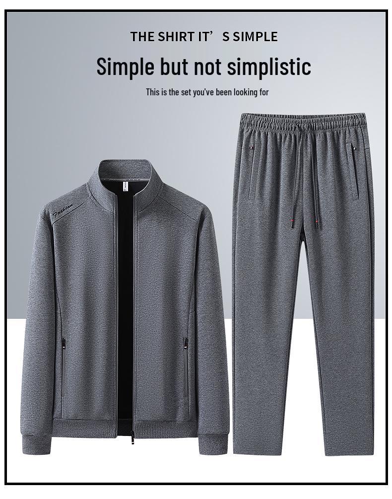 Представляем универсальный и удобный костюм-двойку, разработанный для мужчин среднего и пожилого возраста. Этот повседневный спортивный костюм свободного кроя состоит из свитшота со стойкой и кардигана, идеально подходящих для переменчивых сезонов весны и осени.. Изготовленный из прочного полиэстера, комплект обеспечивает мягкость и воздухопроницаемость, гарантируя комфорт в течение всего дня.. Его классический дизайн и практичные характеристики делают его отличным выбором для повседневной носки или неформальных выходов.. Собираетесь ли вы на прогулку или отдыхаете дома, этот спортивный костюм обещает стиль и удобство.