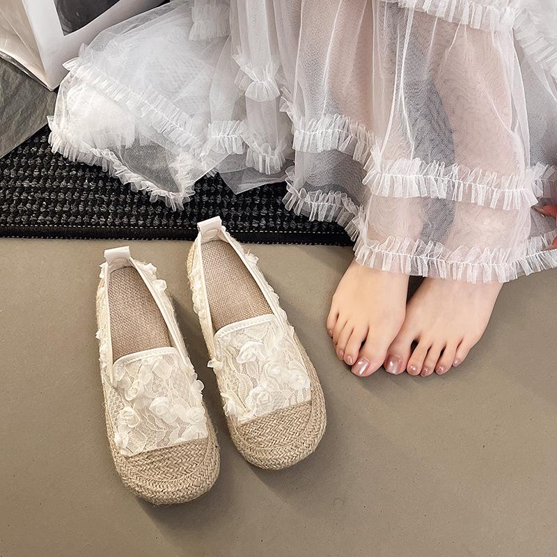 Женская повседневная обувь Лето 2025 Новые туфли-балетки с круглым носком, дышащие, удобные, плетеные, легкие, на вулканизированной подошве, слипоны