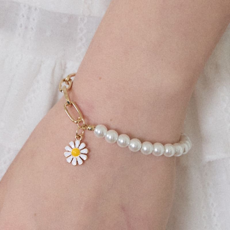 Ourhope Браслет-цепочка с жемчугом и ромашками - Золотой