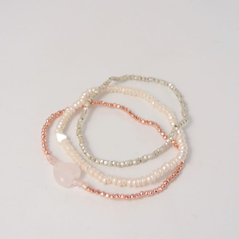 objet213 Heart Layered Bracelet Set (3 set_Silver925+Beads)