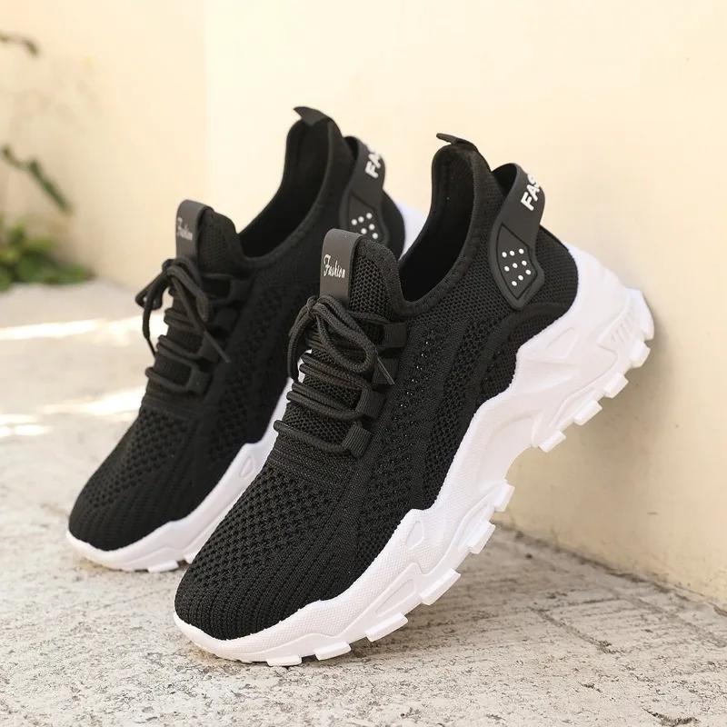 Обувь Женская 2025 Вязаная Женская Вулканизированная Обувь Уличная Однотонная Женская Обувь Сникеры Круглый Носок На Шнуровке Платформа Женская Повседневная Обувь