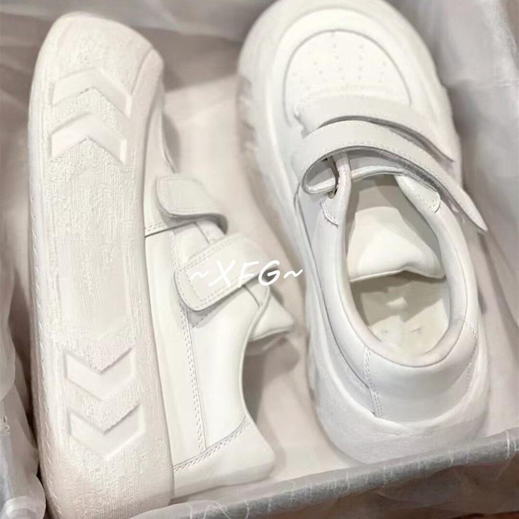 Туфли-хлебушки на платформе с большой липучкой для женщин 2025 осень новая коллекция спортивный досуг в стиле колледжа увеличение роста белые туфли для женщин