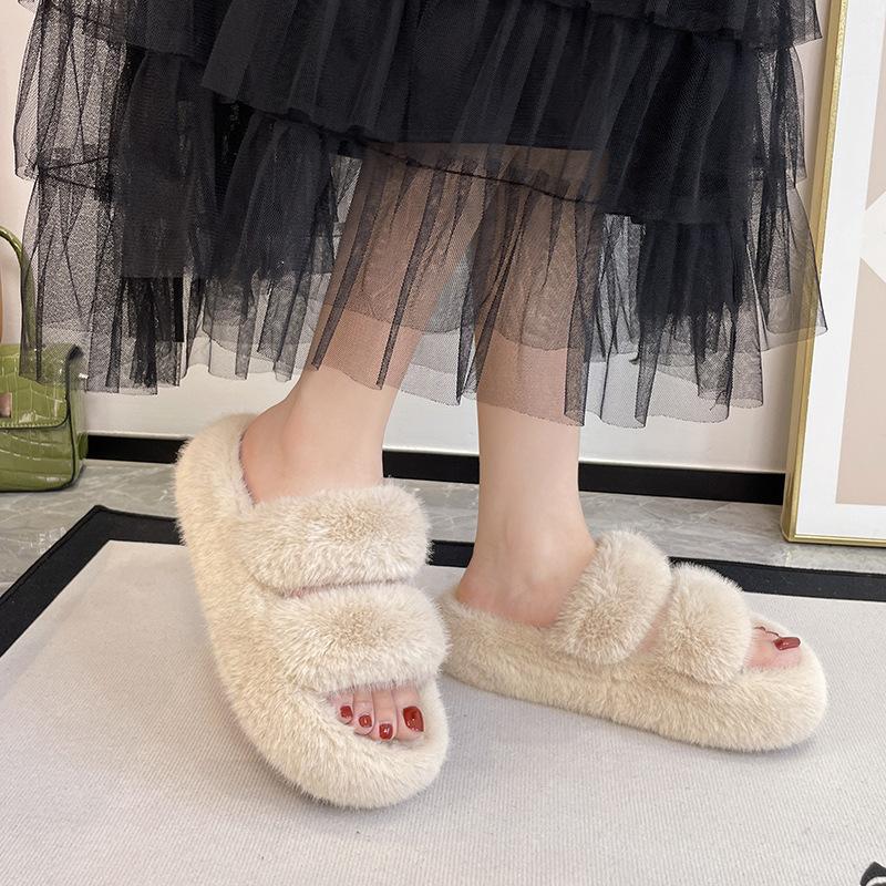 Осень и зима 2025 женская одежда толстая подошва увеличение высоты маленькие новые фея ветер интернет-знаменитость Мао Мао хлопковые тапочки