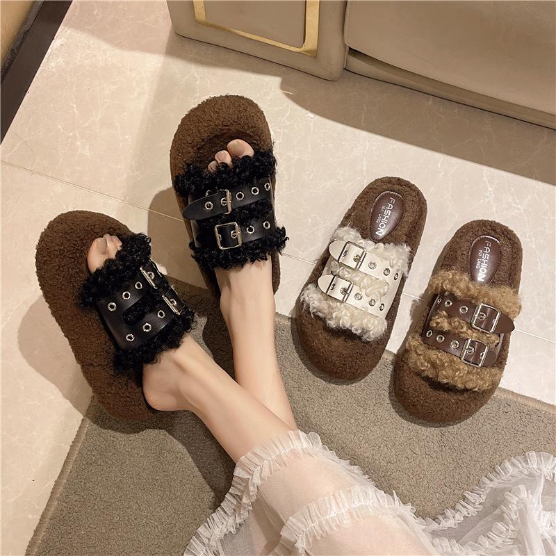 Женские тапочки Mao Mao на толстой подошве, уличная обувь 2025, новая осенне-зимняя модная обувь с плюшевой хлопковой подкладкой на ремешке с пряжкой, красная обувь Mao Mao — купить товар онлайн с бесплатной доставкой по всему миру!