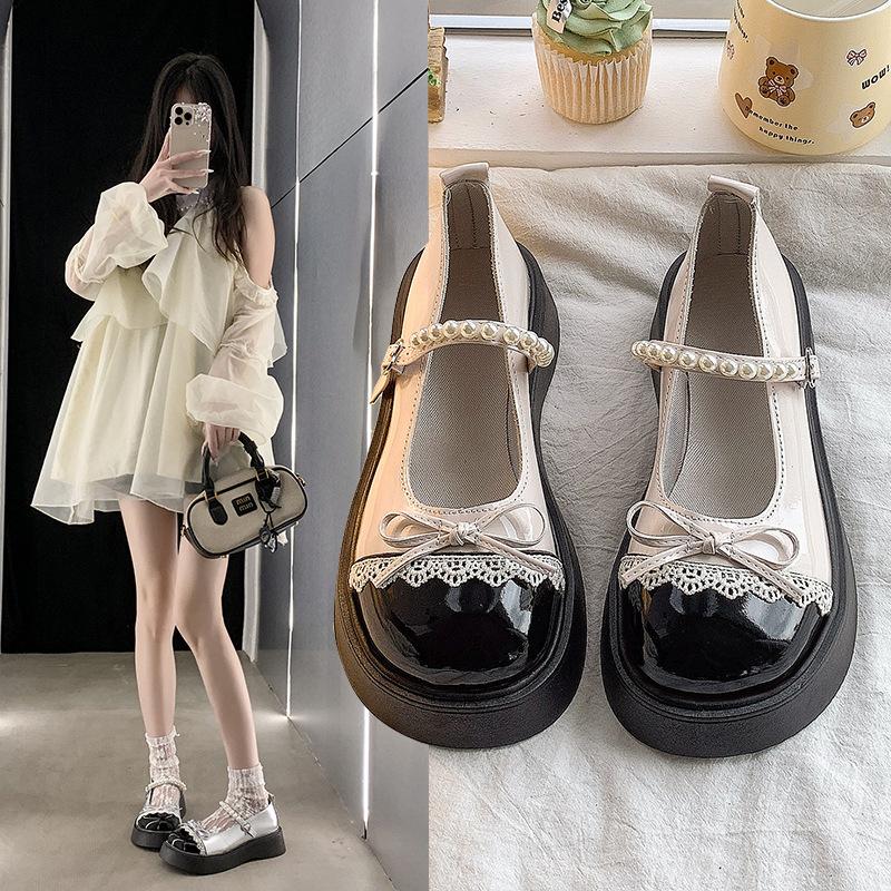 Японские jk новые с юбкой бантом жемчугом женские 2025 лето французская платформа маленькие кожаные туфли Мэри Джейн туфли-лодочки